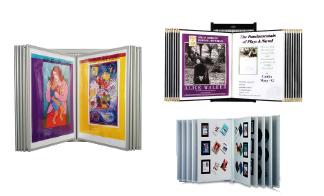 Swing panels are an ideal presentation display when you have numerous materials but have no floor space or limited wall space. These multi panel wall displays can hold a variety of printed materials like posters, art, charts, literature, instructions, schedules, stationary, catalog sheets, photos, prints, maps, blueprints, historical documents, patches, decals, tee-shirt art, flash art and tattoos, product information, even small items such as fabrics samples.